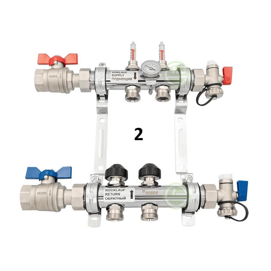 Коллектор 2 контура с расходомерами HKV-D РЕХАУ, 1" бар-6, с кранами, нерж сталь