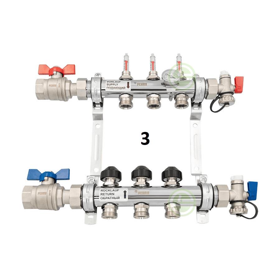 Коллектор 3 контура с расходомерами HKV-D РЕХАУ, 1" бар-6, с кранами, нерж сталь