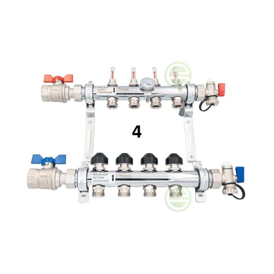Коллектор 4 контура с расходомерами HKV-D РЕХАУ, 1" бар-6, с кранами, нерж сталь