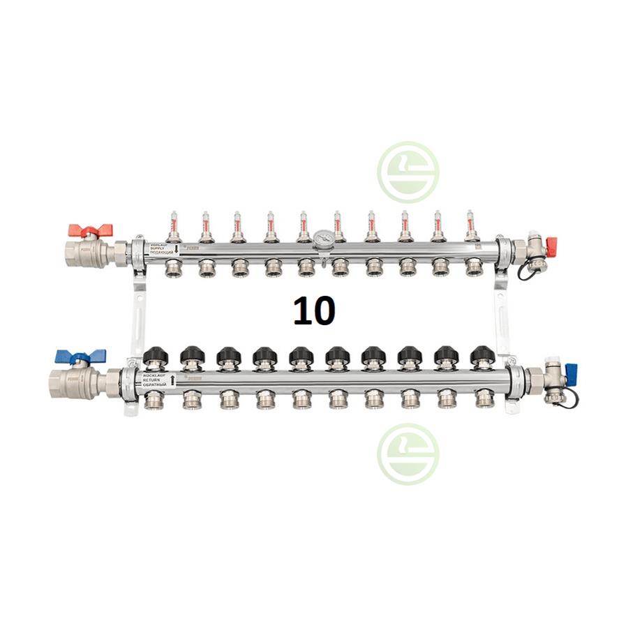 Коллектор 10 контуров с расходомерами HKV-D РЕХАУ, 1" бар-6, с кранами, нерж сталь