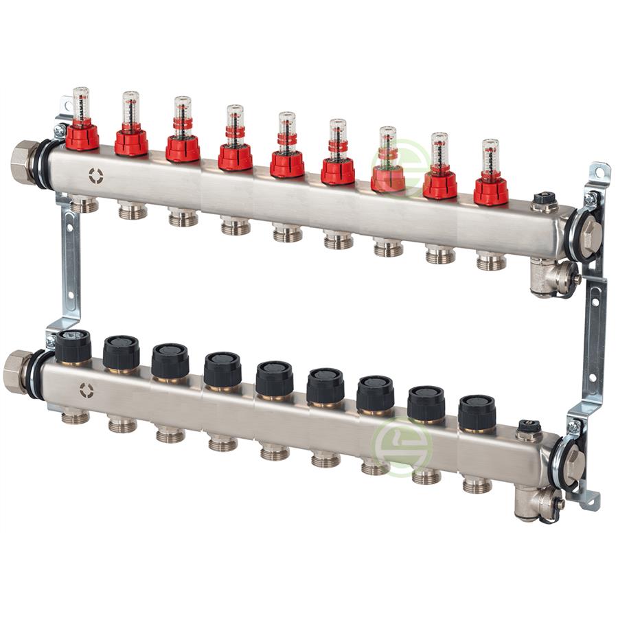 Коллектор 9 контуров с расходомерами Multidis SFR Овентроп, 1" бар-6, с кранами, нерж сталь